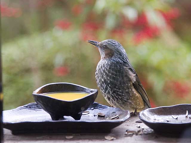 最近ではヒヨドリのペアもやって来るのでジュースはすぐになくなり日に数回は足してやています。
