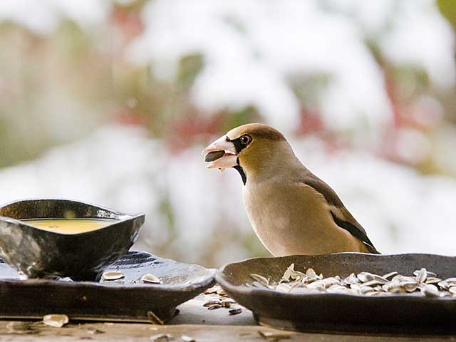 ヒマワリの種子を嘴の中で廻しながら見事に殻を外していって中身を食べます。