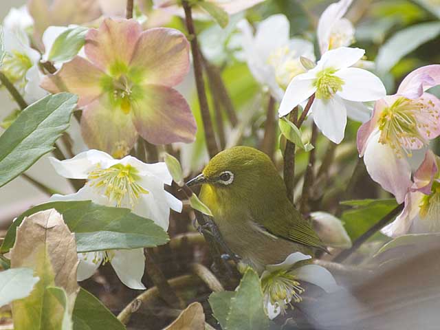 クリスマスローズのメジロ