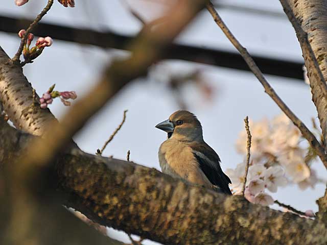 シメも桜に時々は止まりますが、今日は遠くばかりで、よいところには止まってくれませんでした。