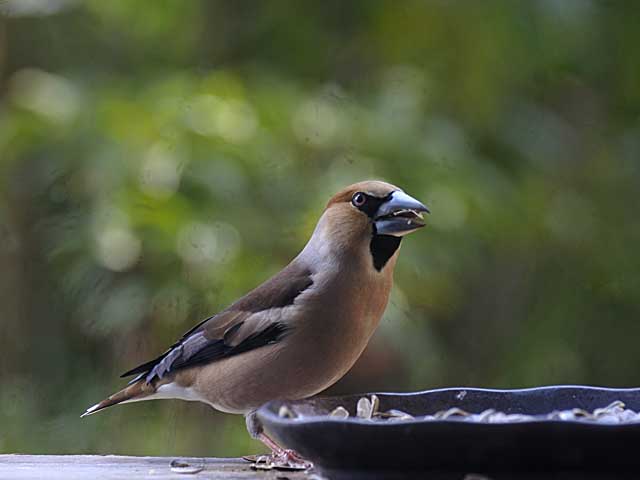 シメはその場でひまわりの殻を嘴で回しながら外して殻を落として中身だけを器用に食べてしまいます。