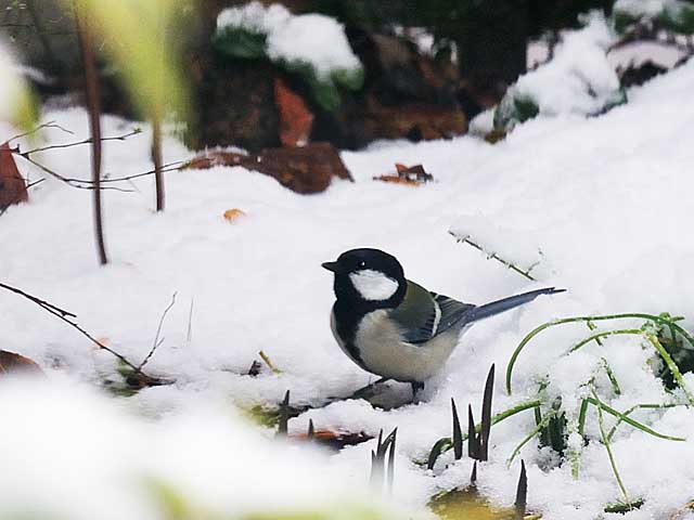 雪の庭にやってきた四十雀です。