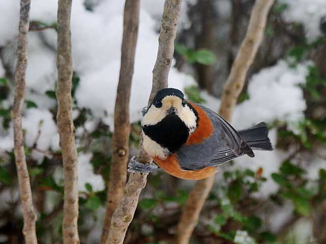 雪の庭に来た鳥たち