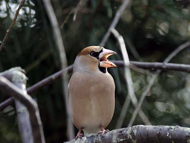 勿論シメにとっても梅の枝は餌台への単なる止まり木です。
