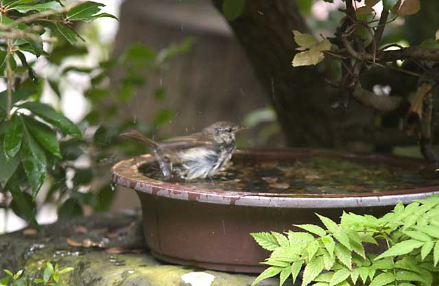 相変わらず、ウグイスが毎日来てくれていますが、この雄は4月末から数えて3代目の♂です。