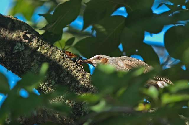蝉を食うヒヨドリ