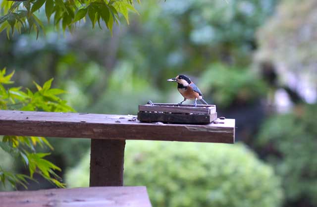 まだ、この時期はおやつ程度に食べてあとはもっぱら冬に備えてせっせと種を運んでいって庭の苔のなかや、桜や高野槇の幹の割れ目のようなところ、植木鉢の中などに隠しています。