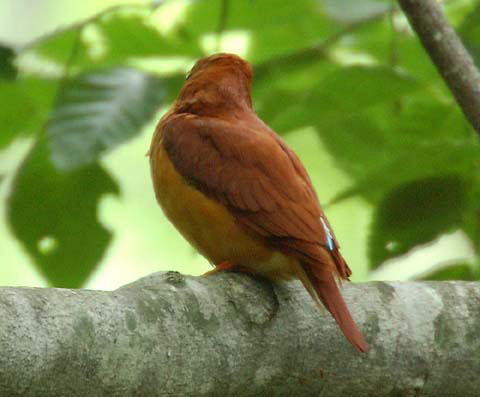 2003.07.09 アカショウビンの背中 アカショウビンの背中には青い羽根があります。 カワセミの仲間だけあって目立たないところでちゃんとおしゃれをしています。 |