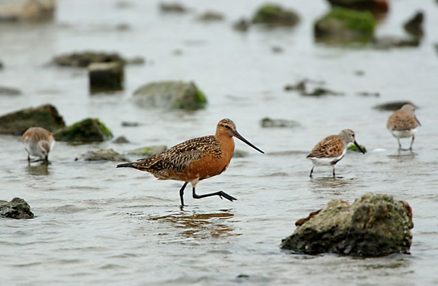 ハマシギと一緒に食事中です。