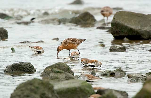 ハマシギと一緒に食事中です。