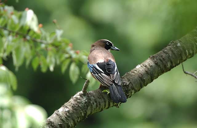 山桜の実を食べに来たカケスです。