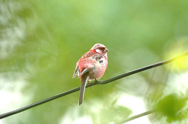 ビジターセンターに通じる電線止まりのベニマシコです。