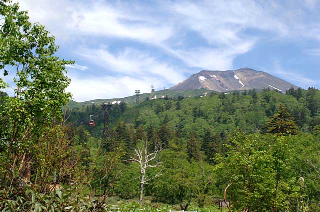 高い山が旭岳で乗ってきたケーブルカーが写っています。