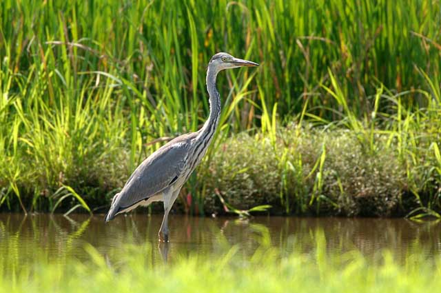 休耕田で出会ったアオサギの若鳥です。