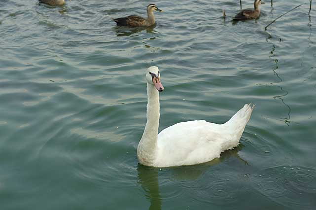 (コブハクチョウは本来は野鳥ですが、この鳥はいわゆる籠抜けの鳥です。)