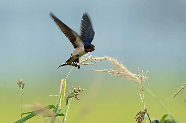 休耕田の背の高い雑穀や雑草の上には多数のツバメたちが群れていました。