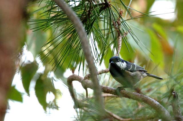 マツの枝の中でしきりに虫を探しているようでした。
