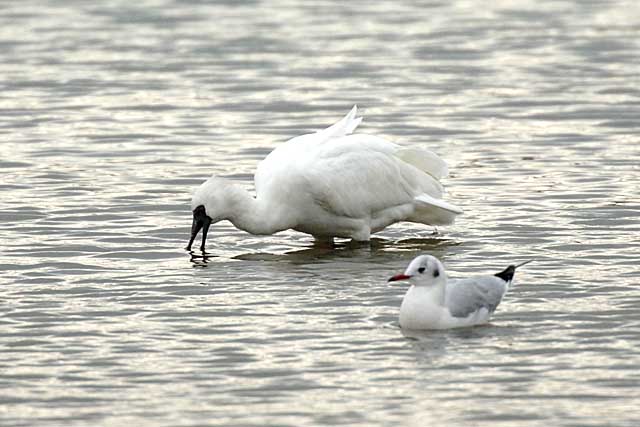 ヘラのようなくちばしを左右に振りながら餌を探しています。
