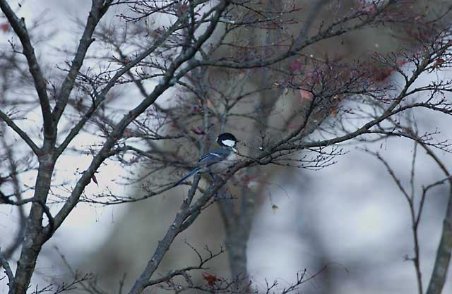 紅葉にシジュウカラの取り合わせは絵になりますが、葉の落ちたカエデの中のシジュウカラもまた、初冬を感じさせてくれます。