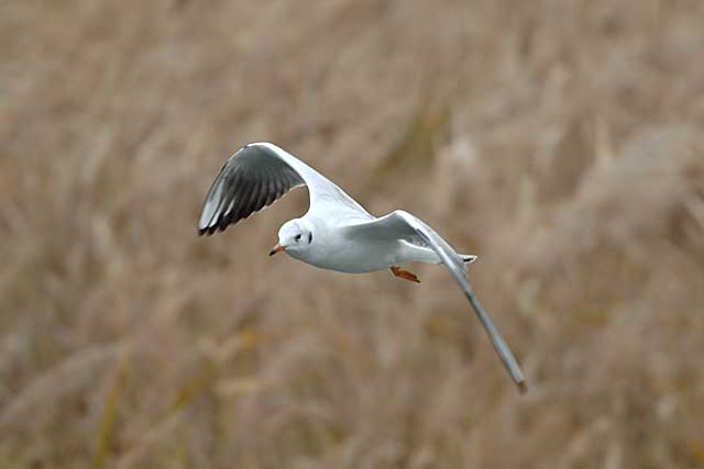 沢山いるユリカモメも葦原の上を時々飛びます。