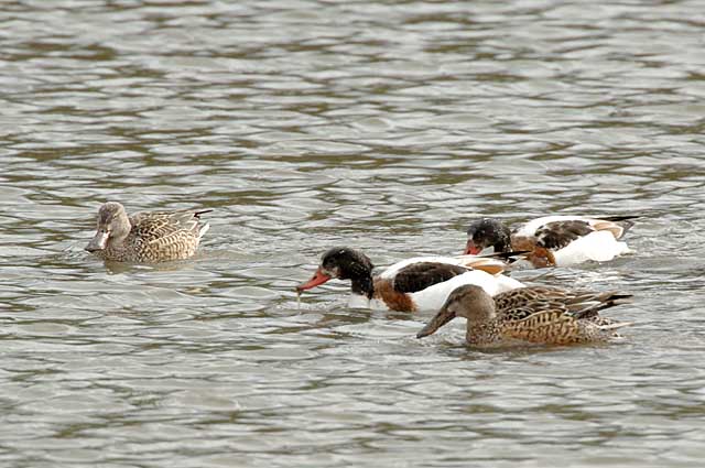 ハシビロガモやコガモたちと混じっての食事です。