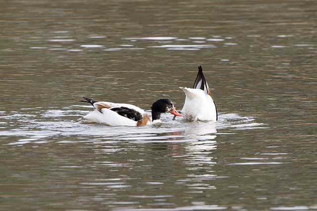みな、逆立ちをして届く範囲の水草を食べています。