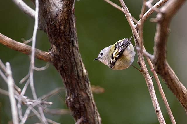 雑木林の中をコゲラ、シジュウカラ、ヤマガラ、オナガ、メジロなどと一緒に、混群でせわしく枝移りしながら餌を探していました。