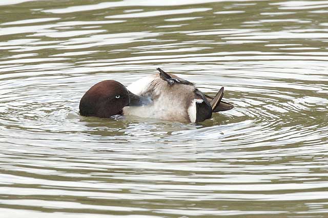食事の後は水の上にひっくり返って羽毛の手入れです。