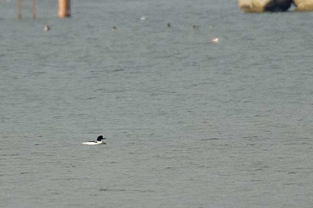 何とも遠くのカワアイサです。