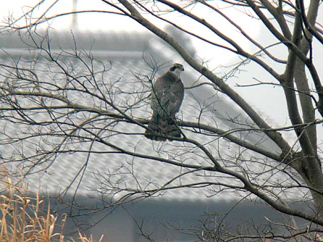 野鳥の会奈良支部の平城宮跡探鳥会で出会った遠くのオオタカで、デジスコでの撮影です。