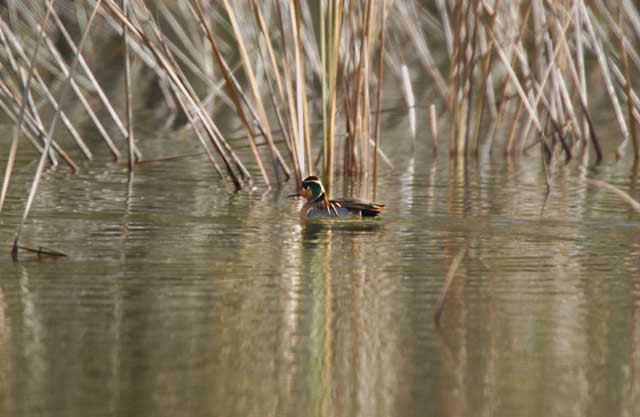 2羽のトモエガモを見つけて撮影準備中に一羽はどこかに行っていましましたが、もう一羽は何とか写せる範囲に、きてくれました。