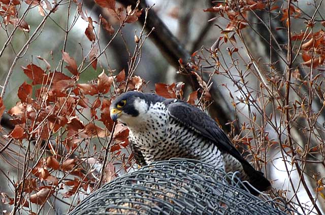 崖の最上部の崩落防止のネットの上から下を見下ろしている♀です。