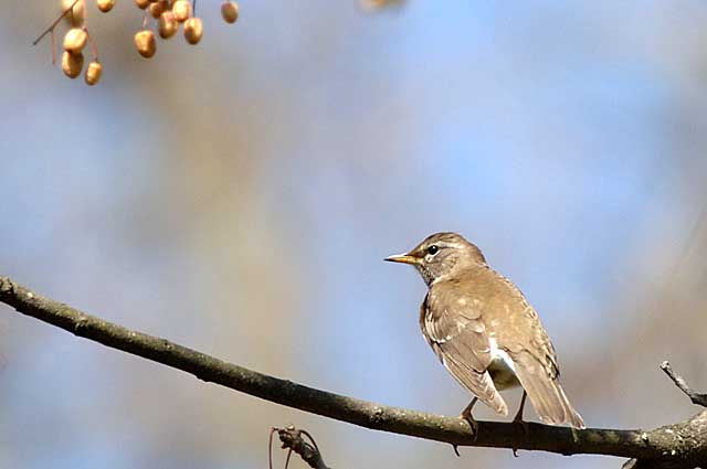 雌のマミチャジナイは頭がオリーブ褐色です。
