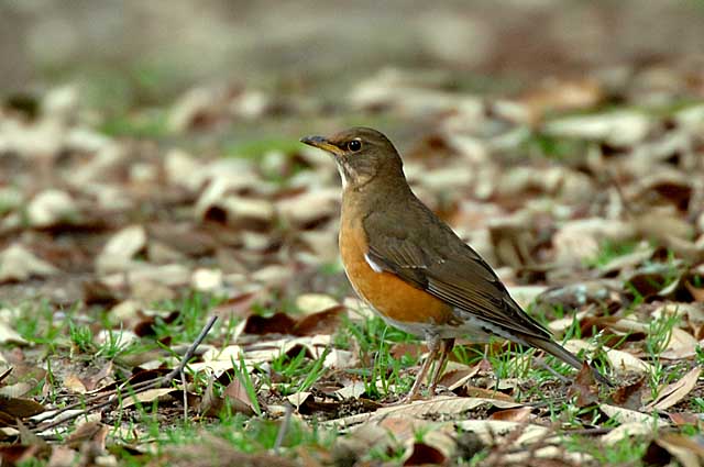 イチイガシの林の下で餌を探すアカハラです。