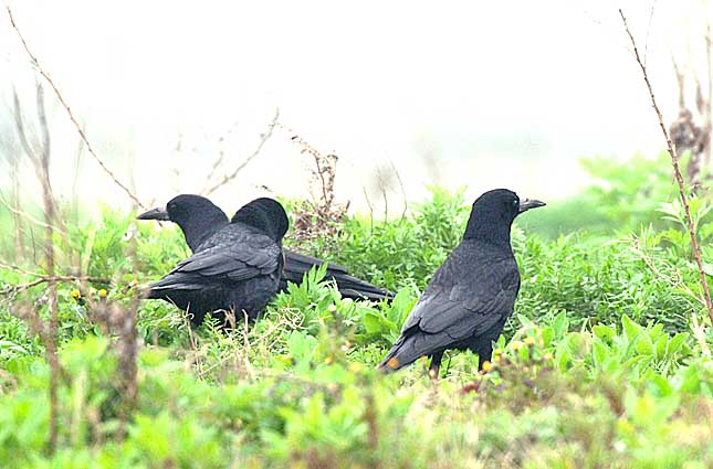 日本で越冬して大陸に渡り繁殖するミヤマガラスです。