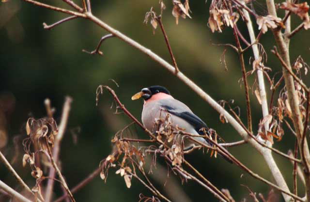 ウソは山の中腹のカエデの実の朝食の最中でした。