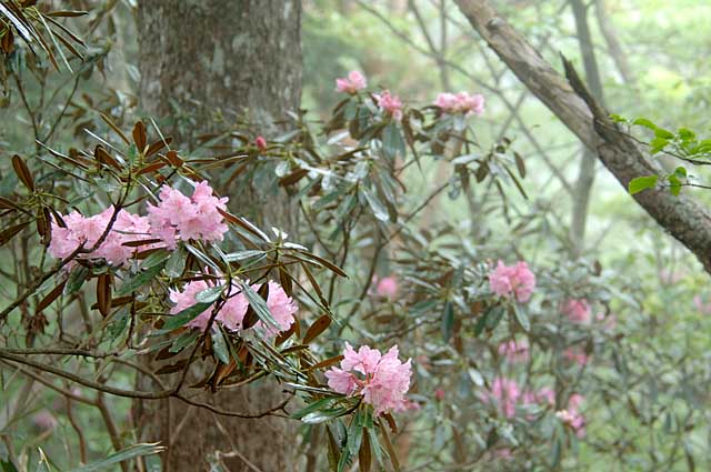 シロヤシオの花も上の方には霧の中にすこし咲き残っていました。