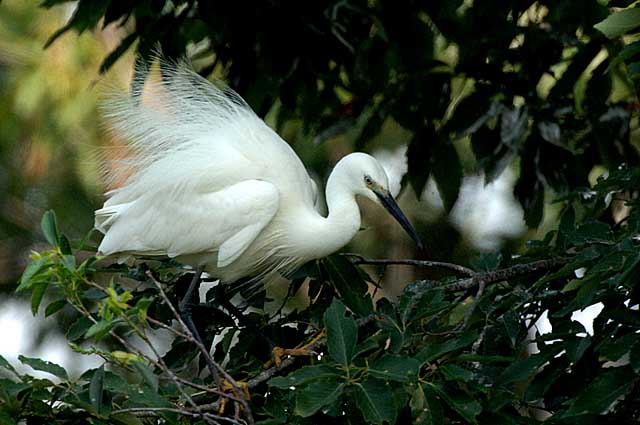 小さなコロニーで子育ての最中のコサギです。