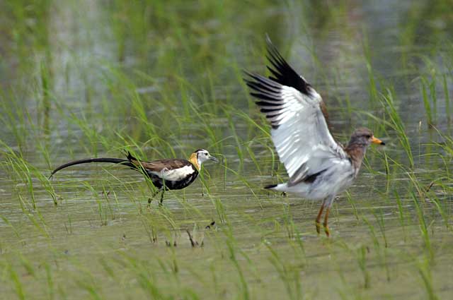尾羽を除くとケリの幼鳥のほうが一回り大きいです。
