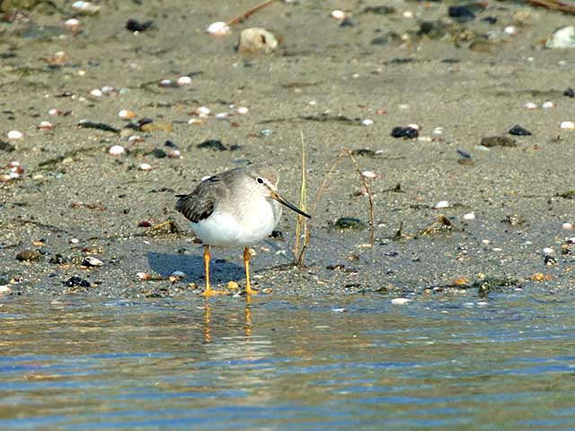 今日は朝が満潮で、ようやく引き始めた川の中州に真っ先に姿をあらわしたソリハシシギです。
