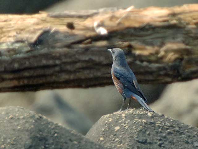 淀川の河口でシギ・チドリの撮影中に出てきたイソヒヨドリです。