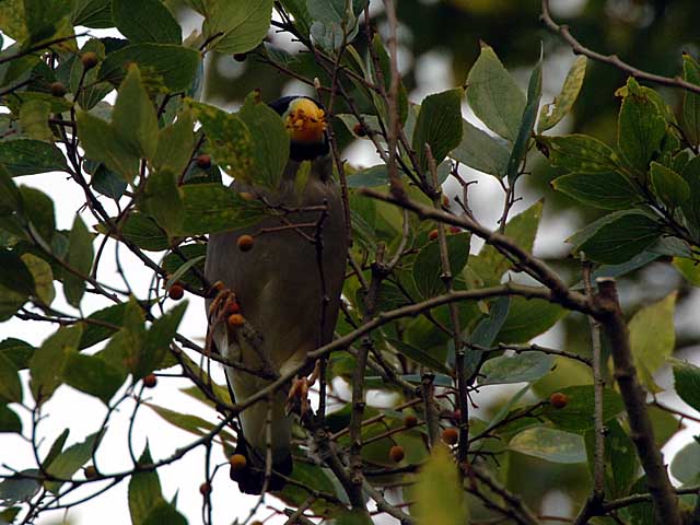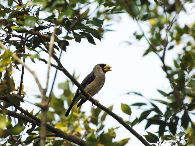 2006.9.30 イカル 逆光の空抜けのひどい写真ですが、奈良公園に沢山いたイカルです。 |