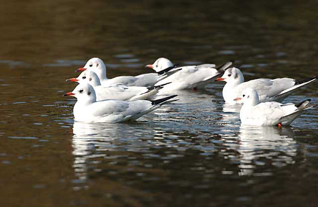 着水してカモメの水兵さんよろしく、整列して泳いでいるところです。