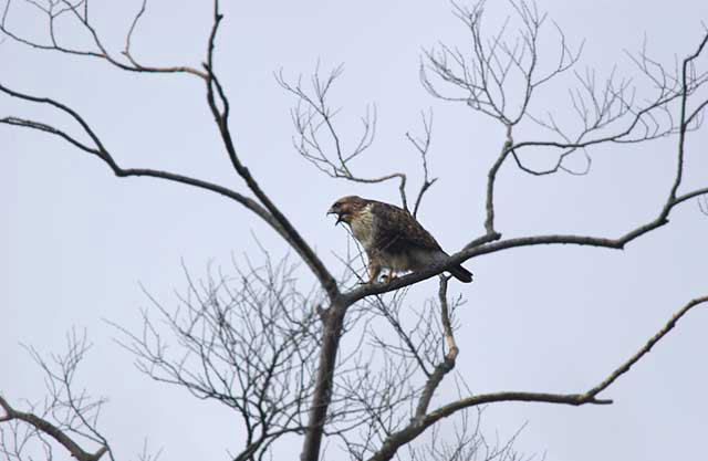 御陵の近くの雑木林にノスリが止まって、盛んにピーヨ、ピーヨと鳴いていました。