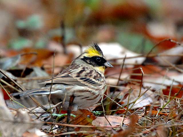 10羽程度の群れで落ち葉の間から餌を探しています。