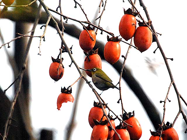 小さな渋柿ですが、そろそろ渋が抜け始めたのでしょう。