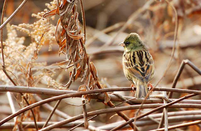 山辺の道の到るところにセイタカアワダチソウやススキの原があり、ホオジロ、カシラダカ、アオジたちのよい餌場になっています。