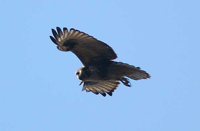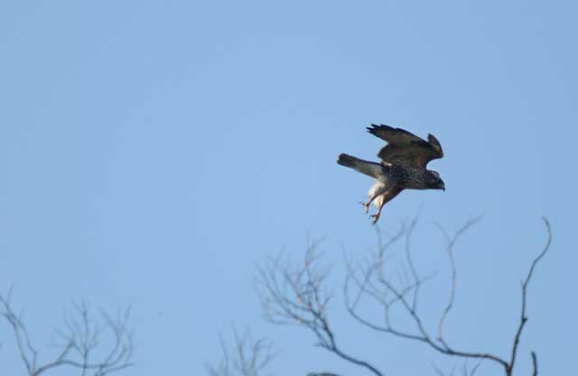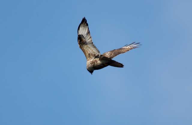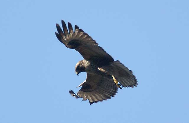 | 2004.2.4&6 大空に舞うノスリ 枝から飛び立ったノスリが大空を悠々と滑空して高度を上げてから遙か彼方に飛び去ったり、丘の頂上で、下から吹き上げる上昇気流に乗ってホバリングしてから、『獲物めがけて!』 なのか、あるいは『遊んでいるだけ 』なのか良く分かりませんが一直線にダイブして丘の向こうに消えてゆき、再び戻ってきてまたホバリングとダイブを繰り返したりする光景が見られます。 その様なすばらしいひとときをスライドにまとめて見ました。 |