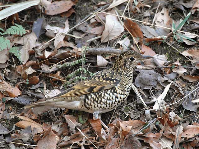 斜面にいたので、背景が前後左右ともに落ち葉の地面となり、トラツグミも迷彩服を着ているようでちょっとめをはなすと、どこにいるのか判らなくなってしまいます。