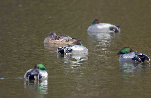 オシドリやマガモ、カルガモなどが雌雄ほぼ同数いるようですがヨシカモやミコアイサなどは今は別の群れを造っているようです。